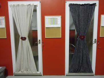 Glass front door w/ curtains
